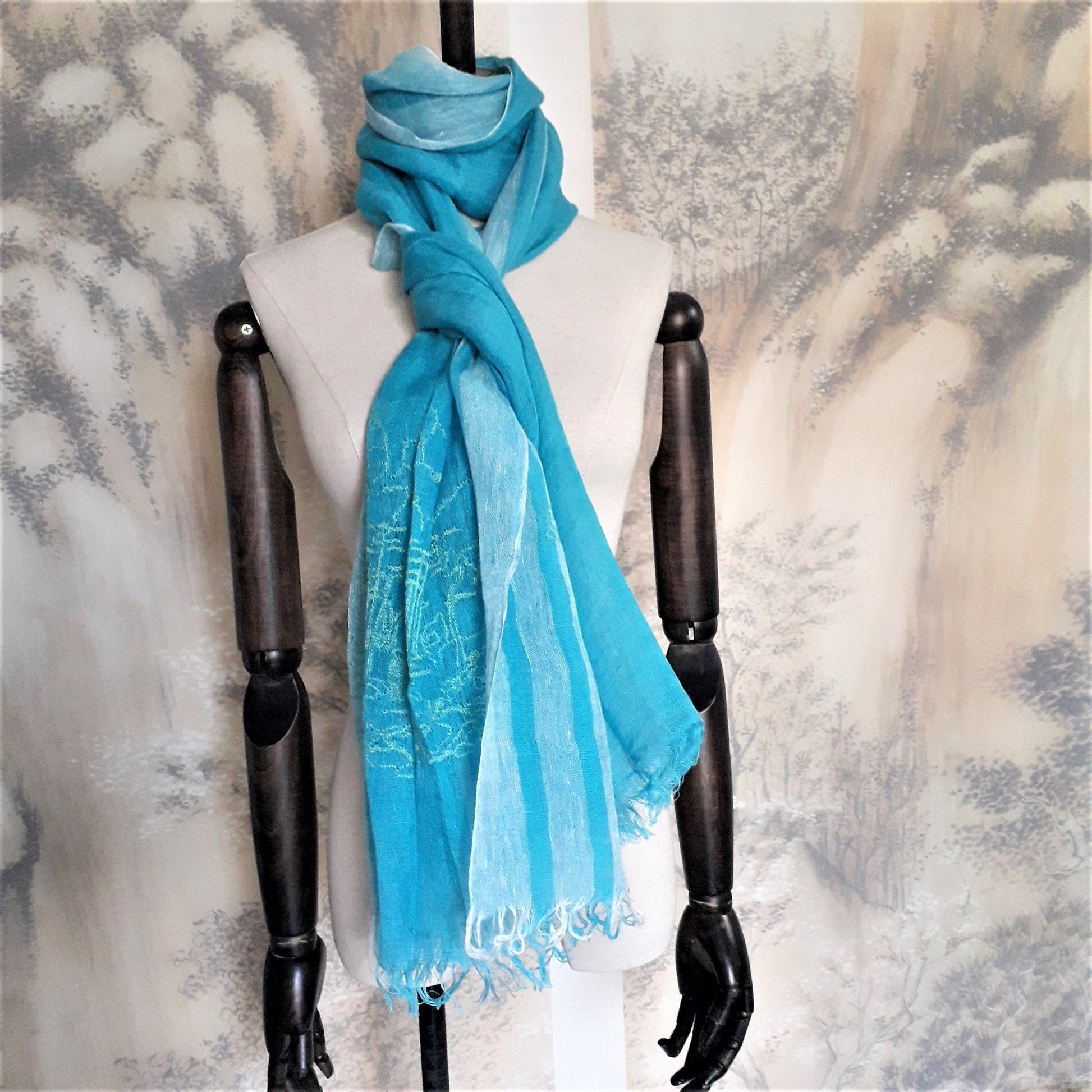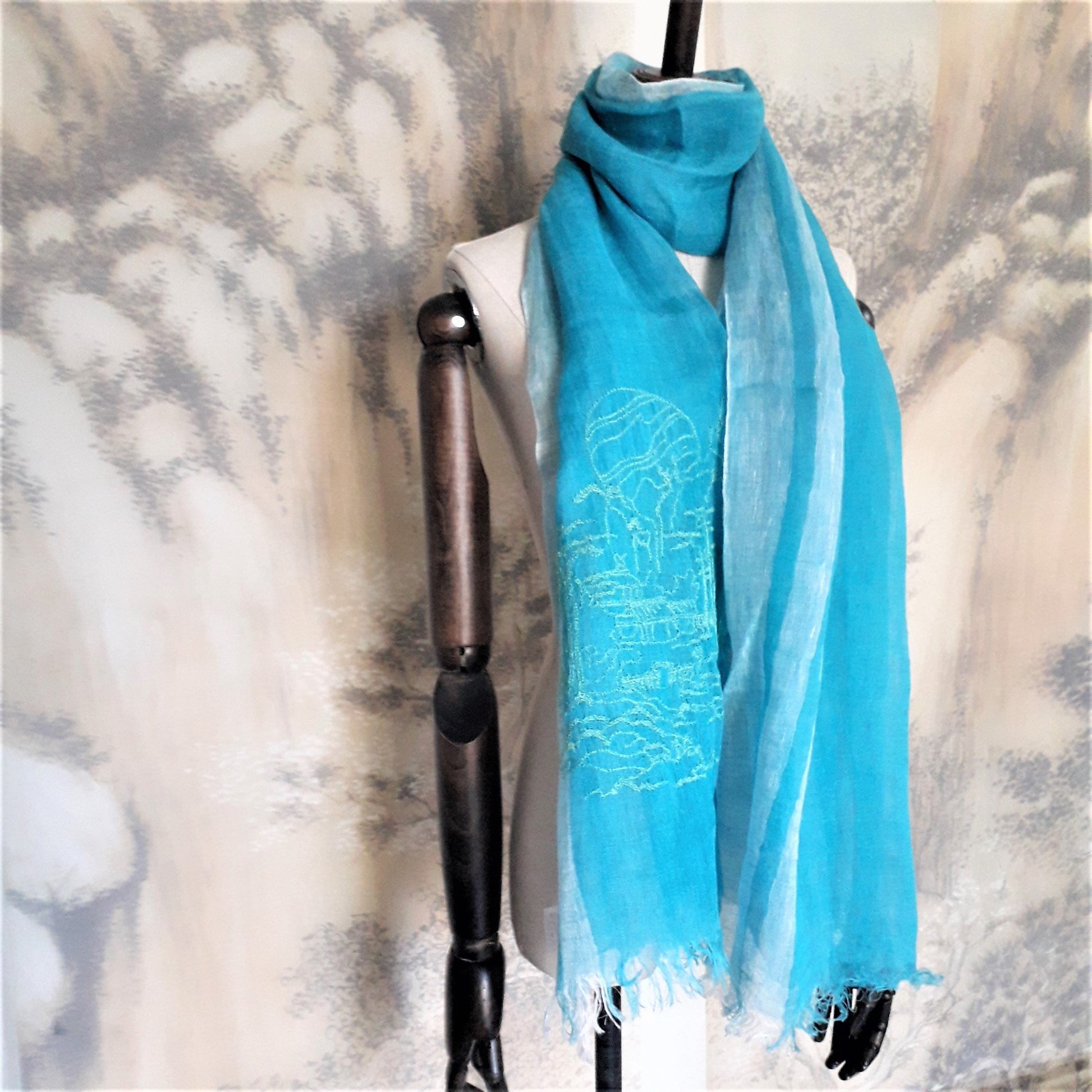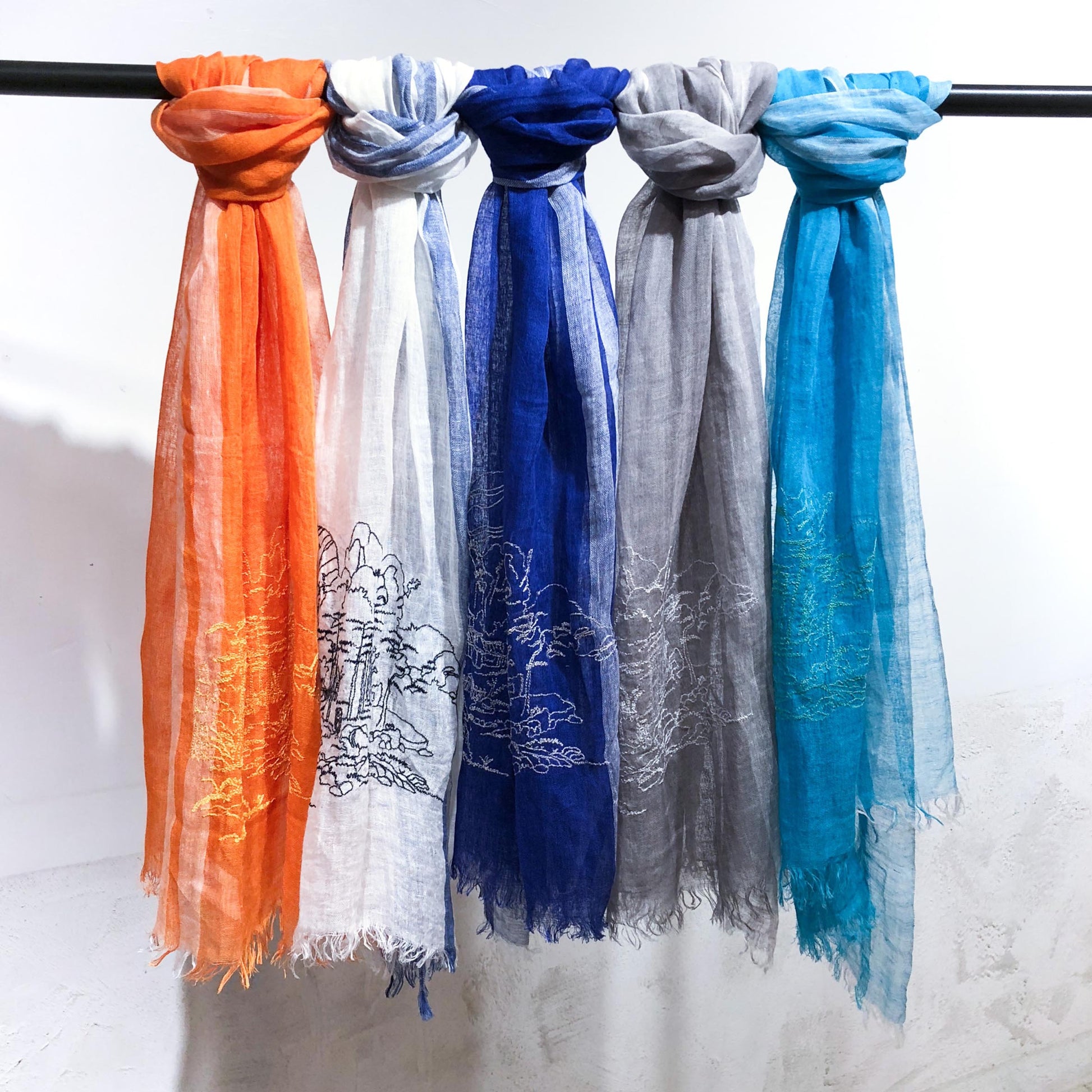 All seasons spaceman gets lost line art embroidery pure linen scarf