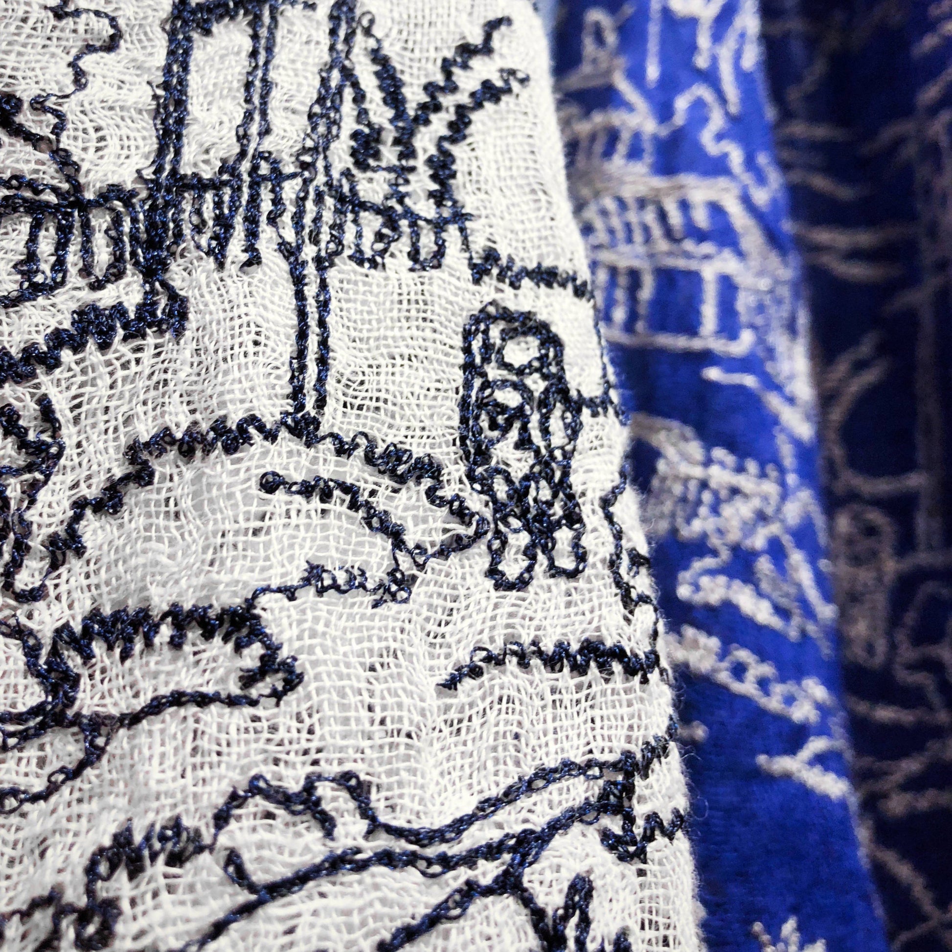 All seasons spaceman-gets-lost line art drawings embroidery linen scarf