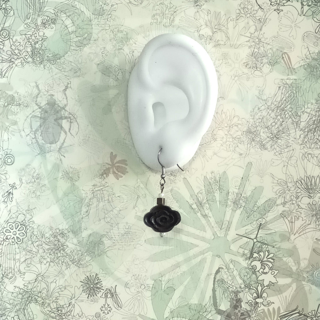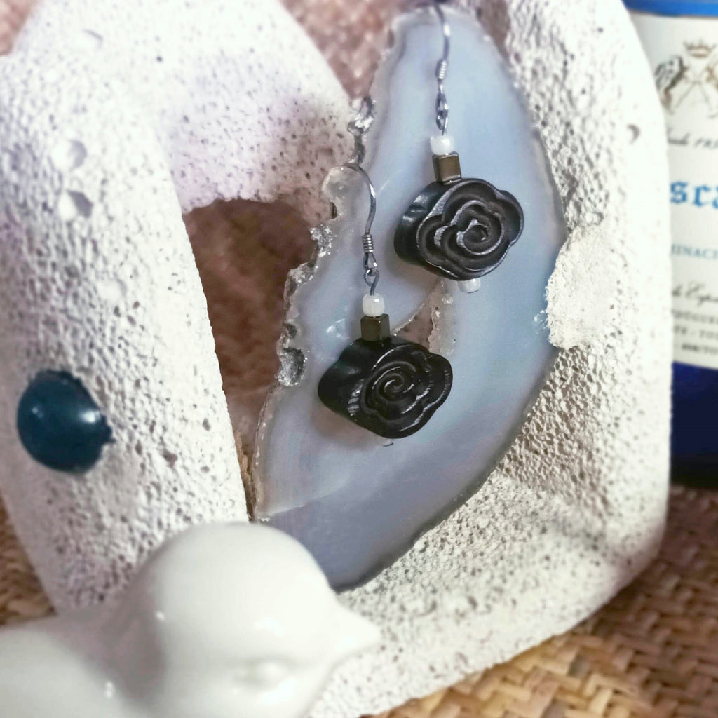 Aromatic ebony crafted auspicious cloud 925 silver ear pins