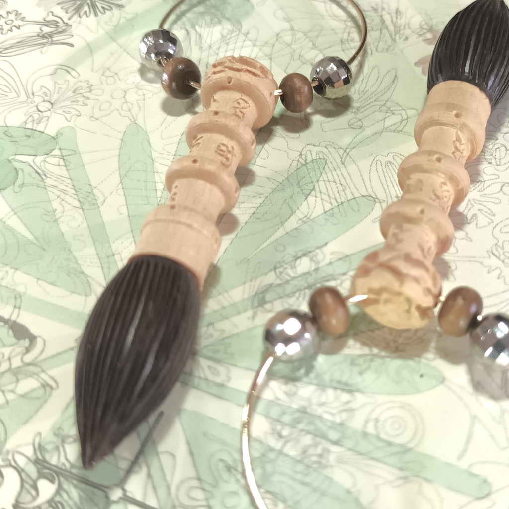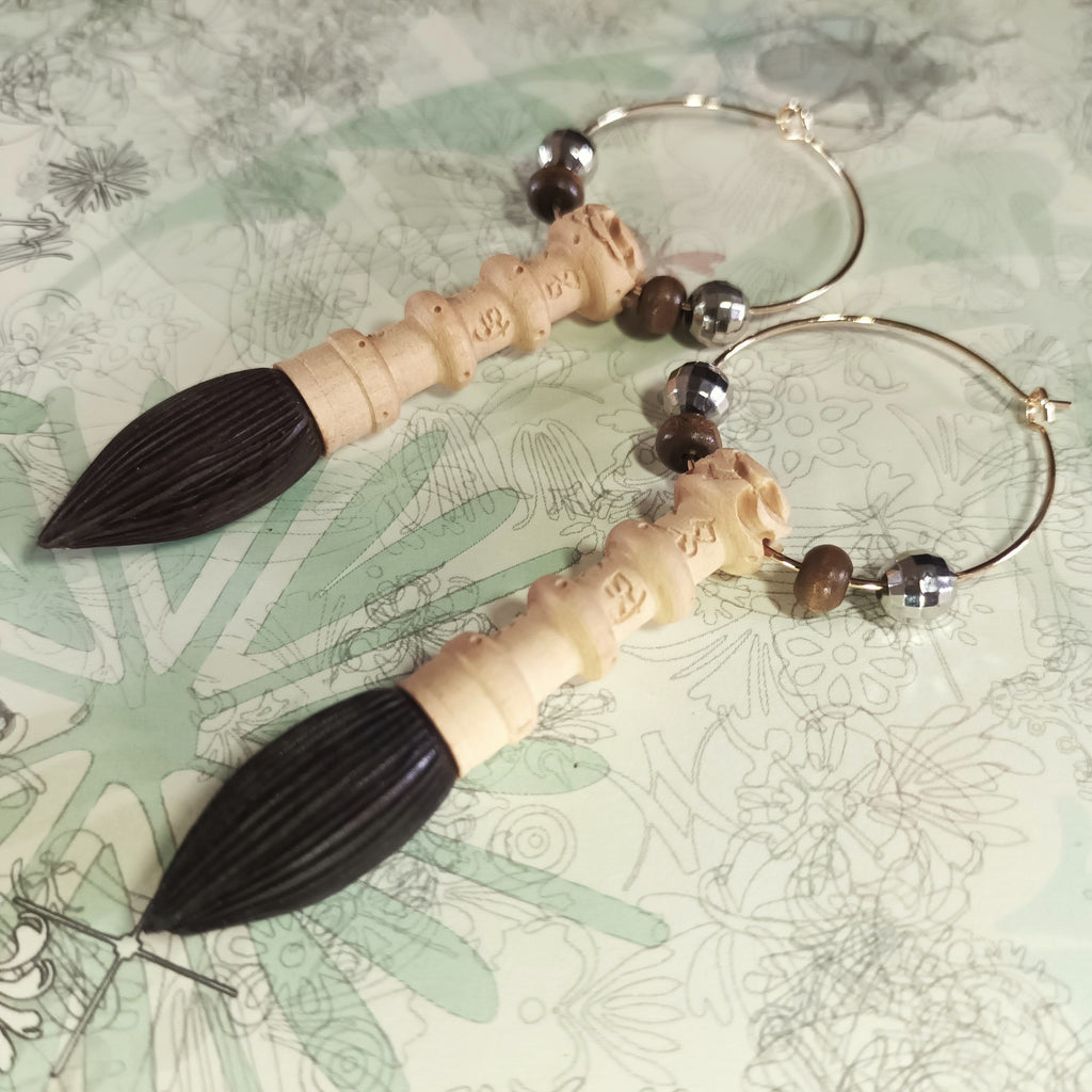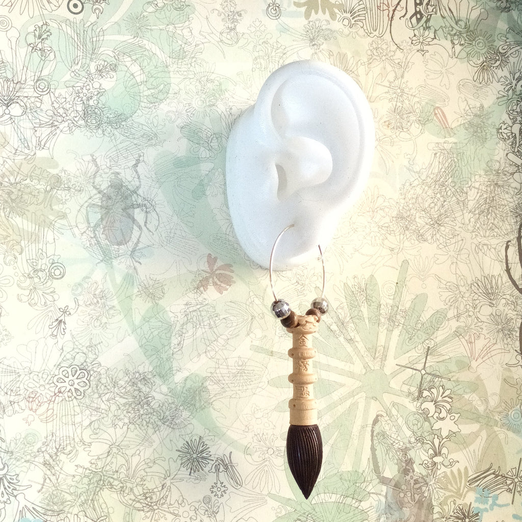 Aromatic Boxwood + Ebony Chinese Scholar's Brush 14K gold plated copper earrings