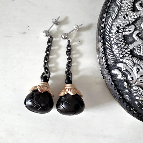 Aromatic ebony Chinese-style Eggplant Bell 925silver ear pins