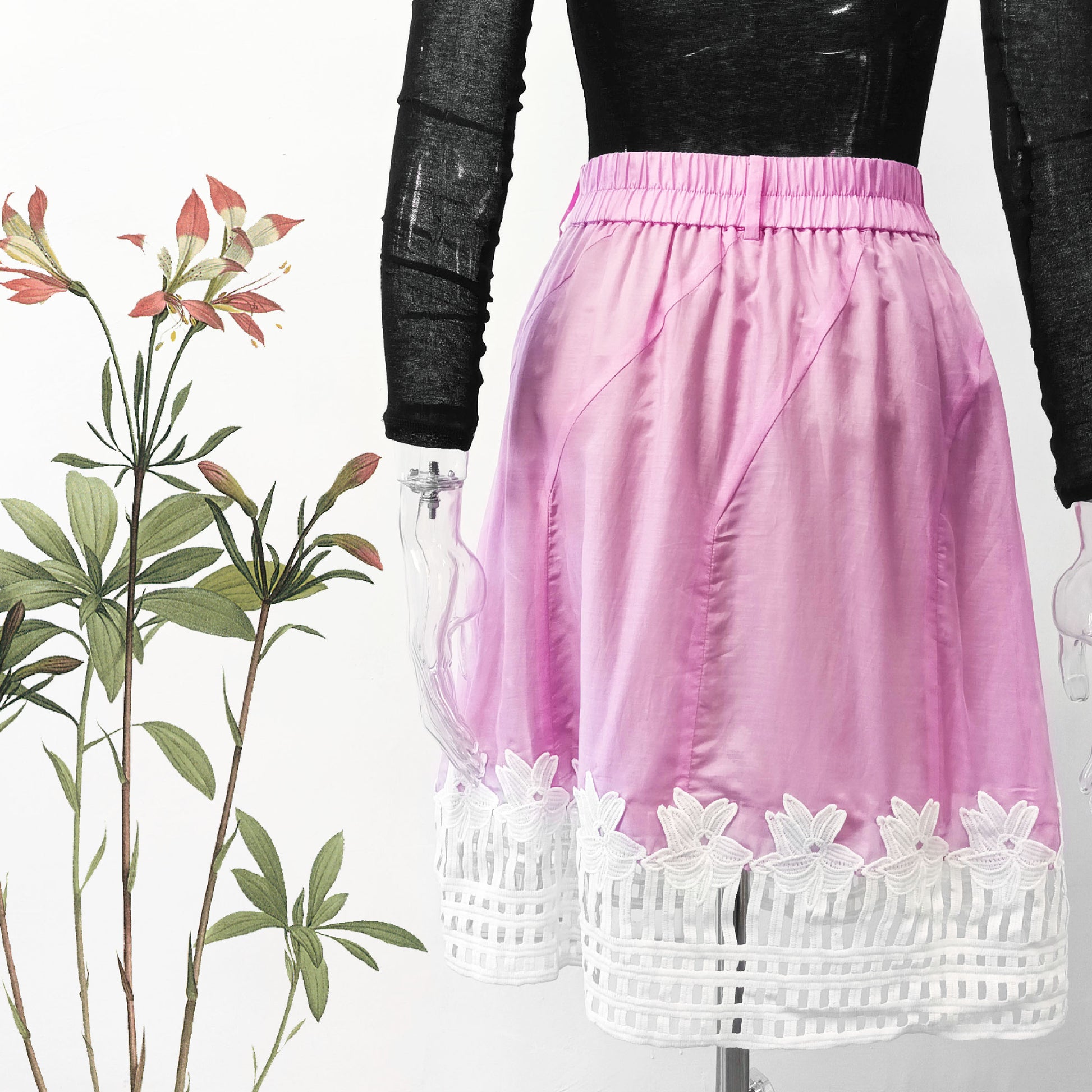 Aesthetically, this skirt is featured by the bold white lace in grid and floral pattern.