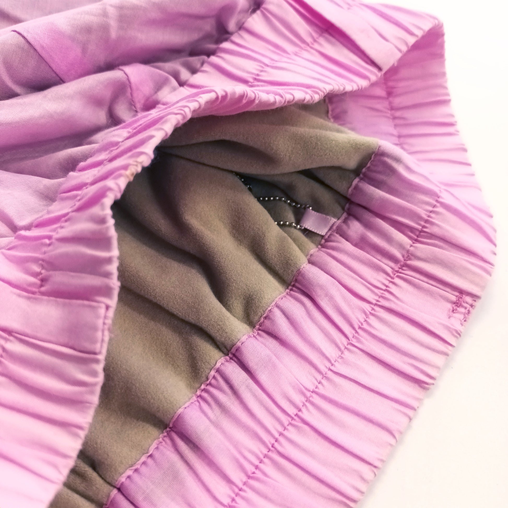 This pretty candy color silk skirt is specially designed for fall winter. Designer use brushed cotton knit as lining to give a warm and cozy touch to the wearer.