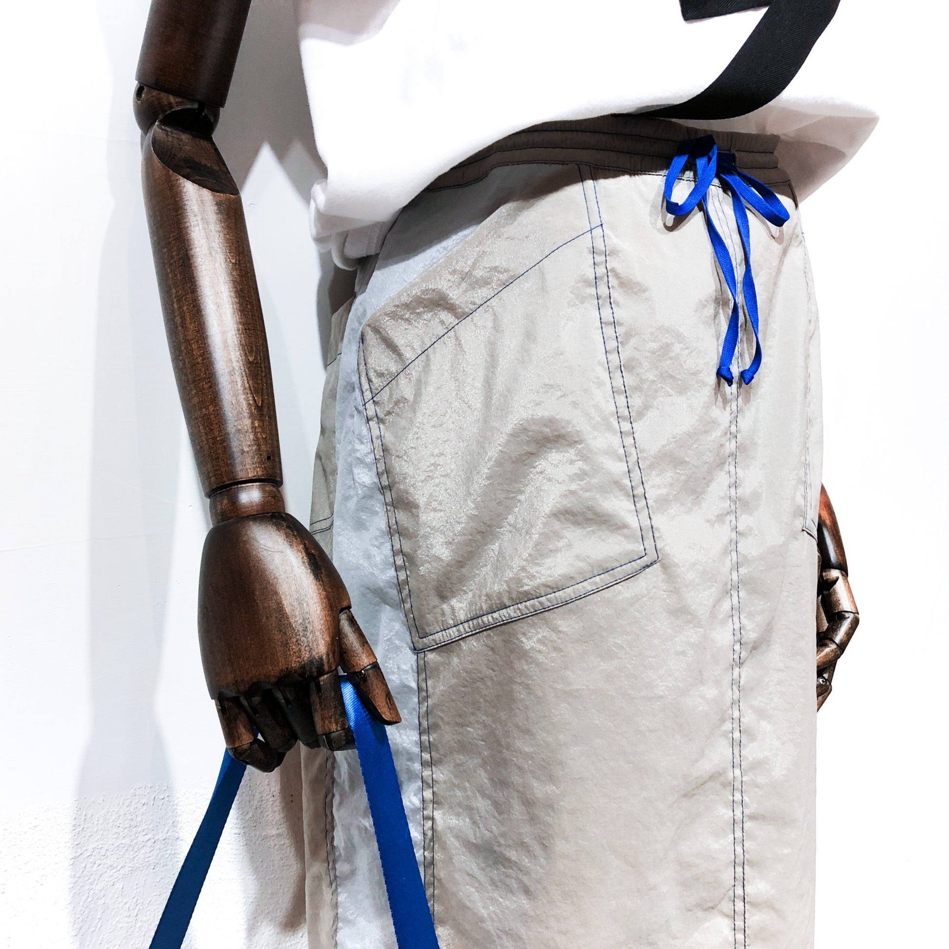 WHOSTHAT color block sportive elastic waist knee length stretchable lined skirt is a combination of sporty brightness and modern whimsicality, with a pop of color in detailed top stitching and waist ties, a wavy hem also express your quirky style. The stretchable nylon fabric comes from Japan, super light weight and thin, a perfect item to add to your closet.