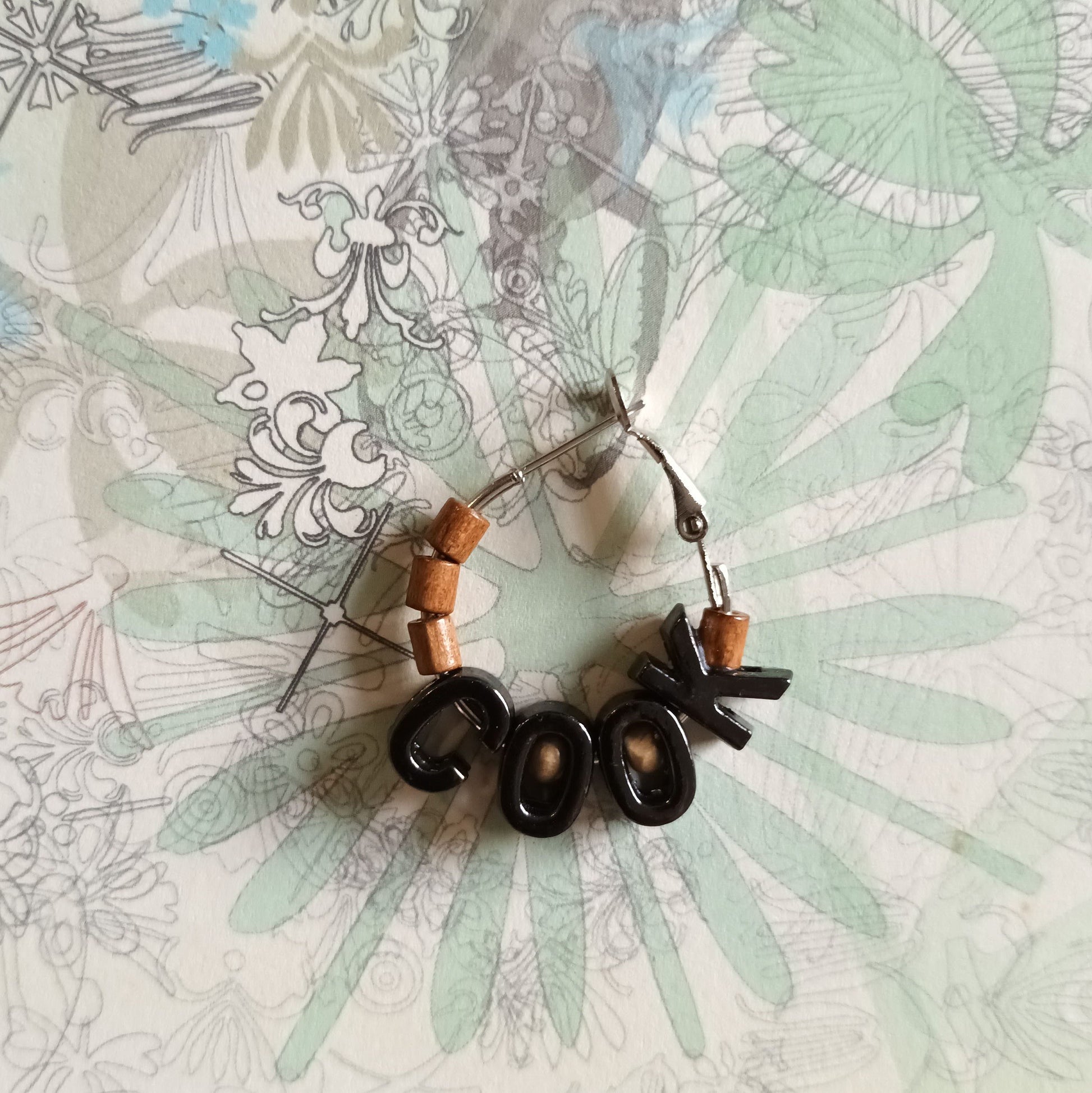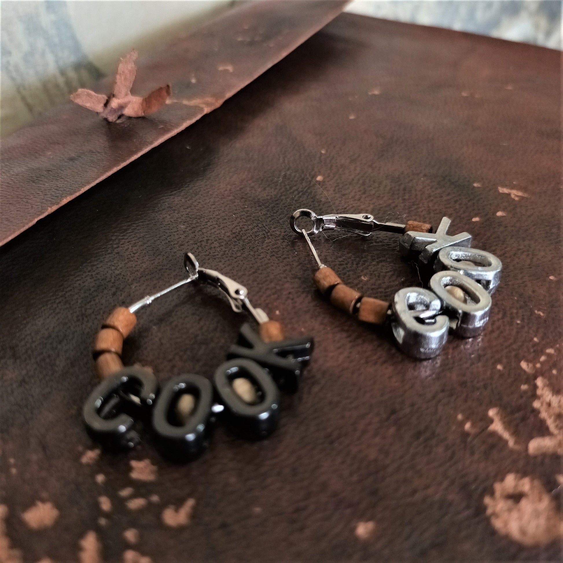 English Alphabet COOK earrings have Right and Left options. Please indicate in your order.
