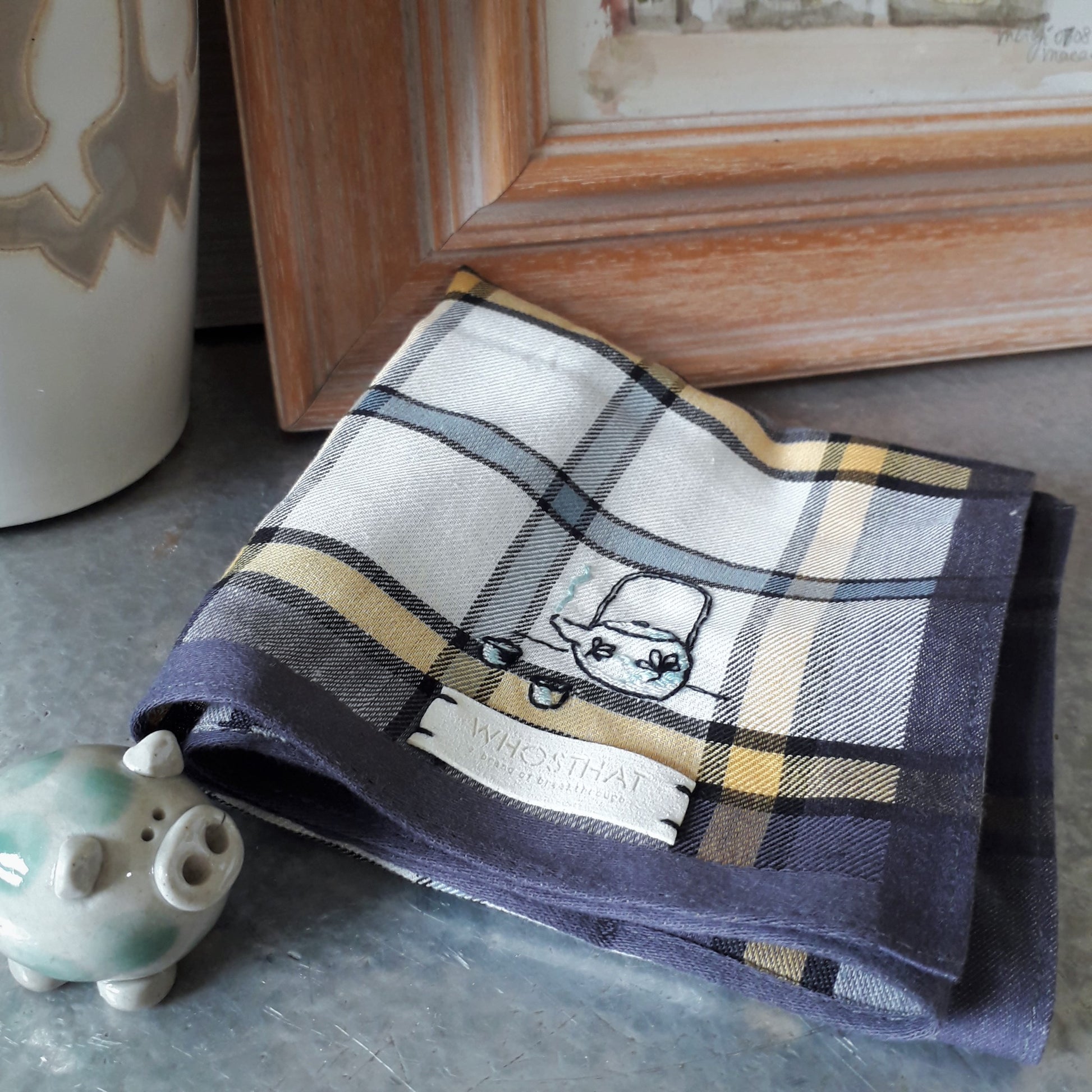 Hand embroidery pure cotton plaid handkerchief pocket square - TOGETHER