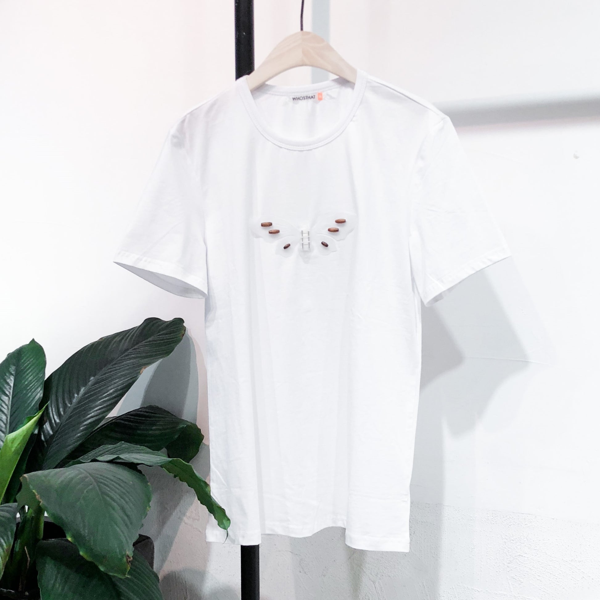 Hand stitch butterfly basic straight cut high end smart casual ladies cotton tee