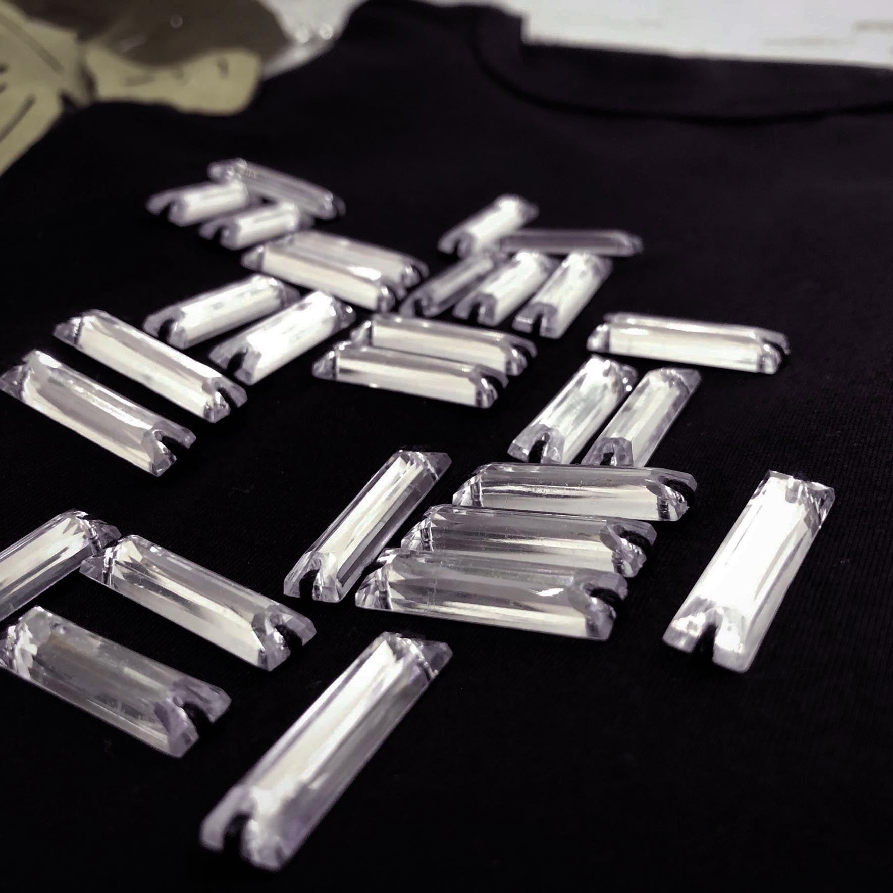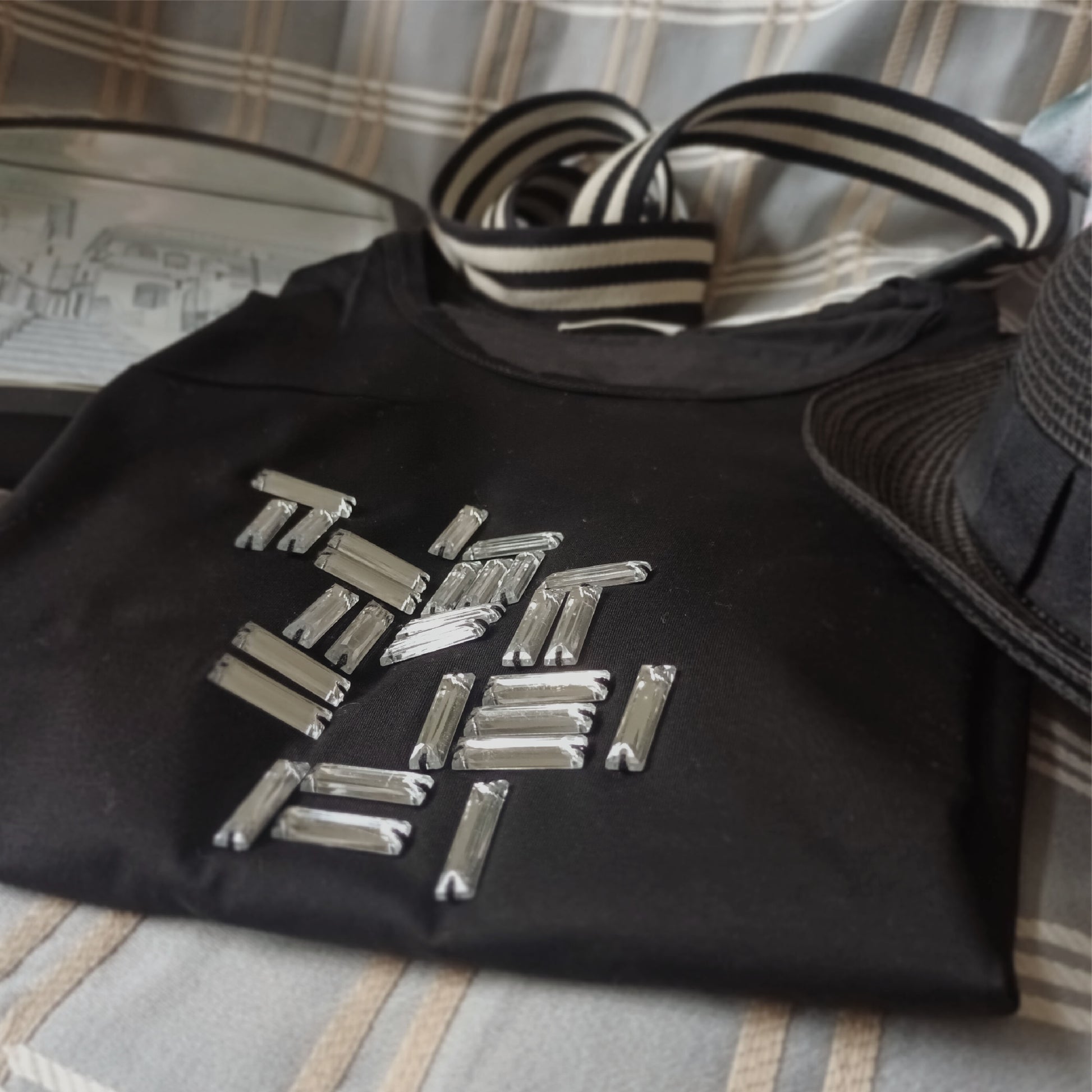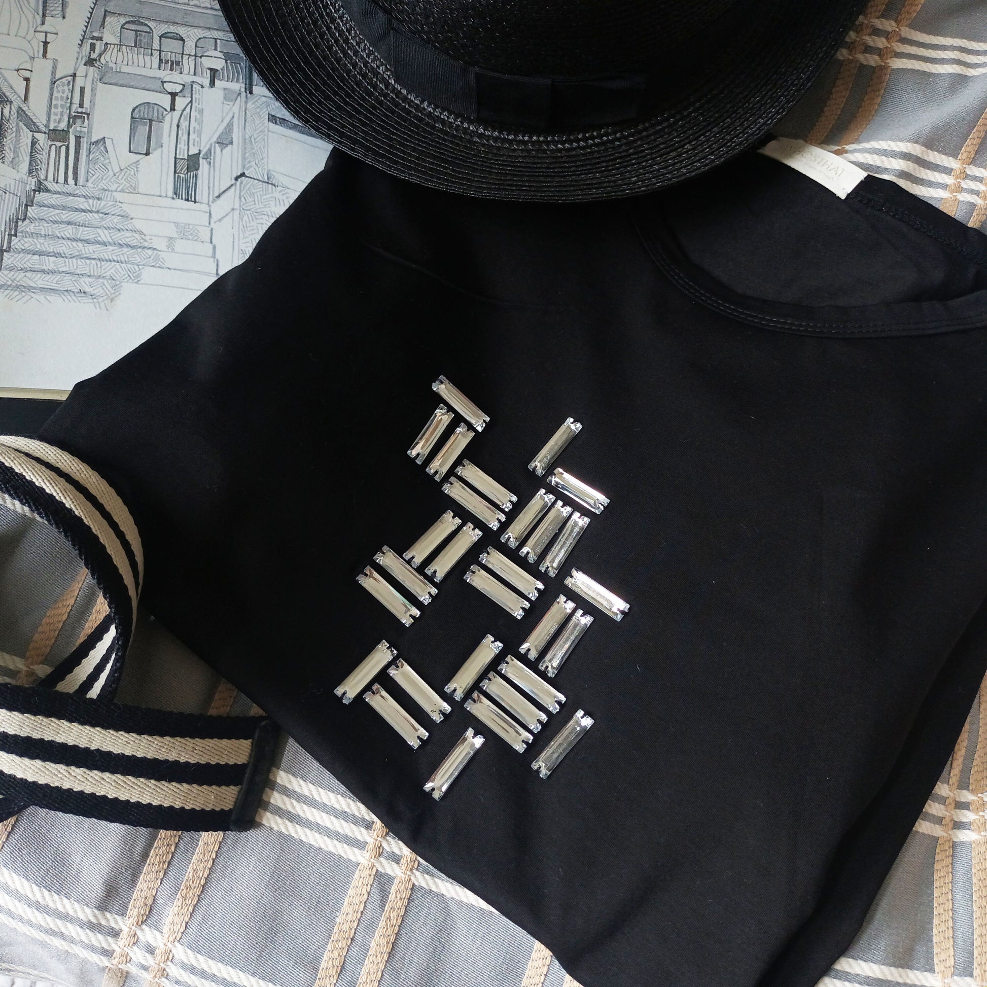 這款百搭簡約直身棉彈高端TEE恤, 時尚清新, 一針一針的縫上立體玻璃珠幾何圖案, 立體,閃亮,有型, 高端. 不想穿印花TEE, 怕顯得太casual, 這Smart casual TEE 是絕佳選項