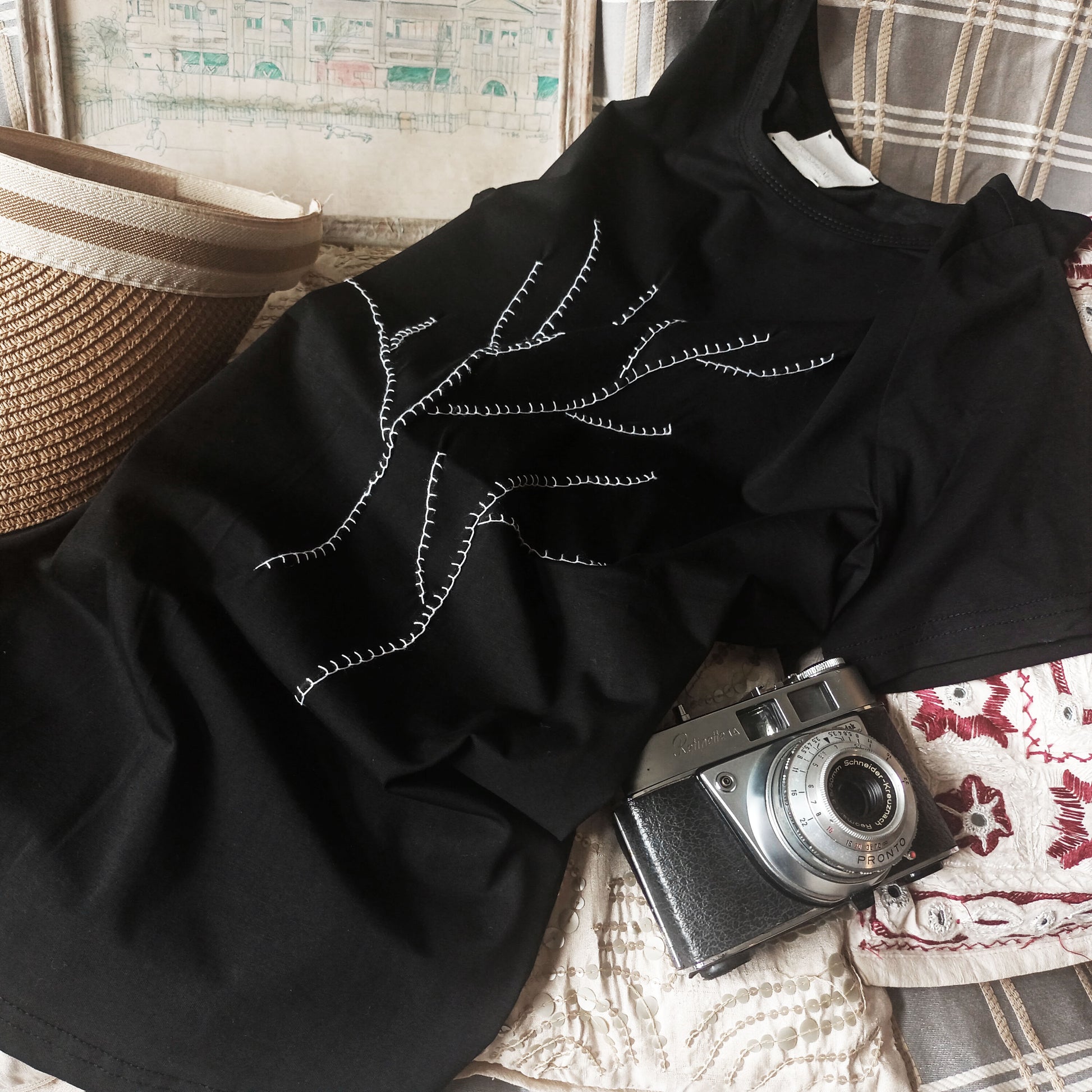 這款百搭簡約直身棉彈高端TEE恤, 時尚清新, 大樹圖案以法國線一針一針的縫上而成, 立體, 精緻,有型, 高端. 不想穿印花TEE, 怕顯得太casual, 這Smart casual TEE 是絕佳選項