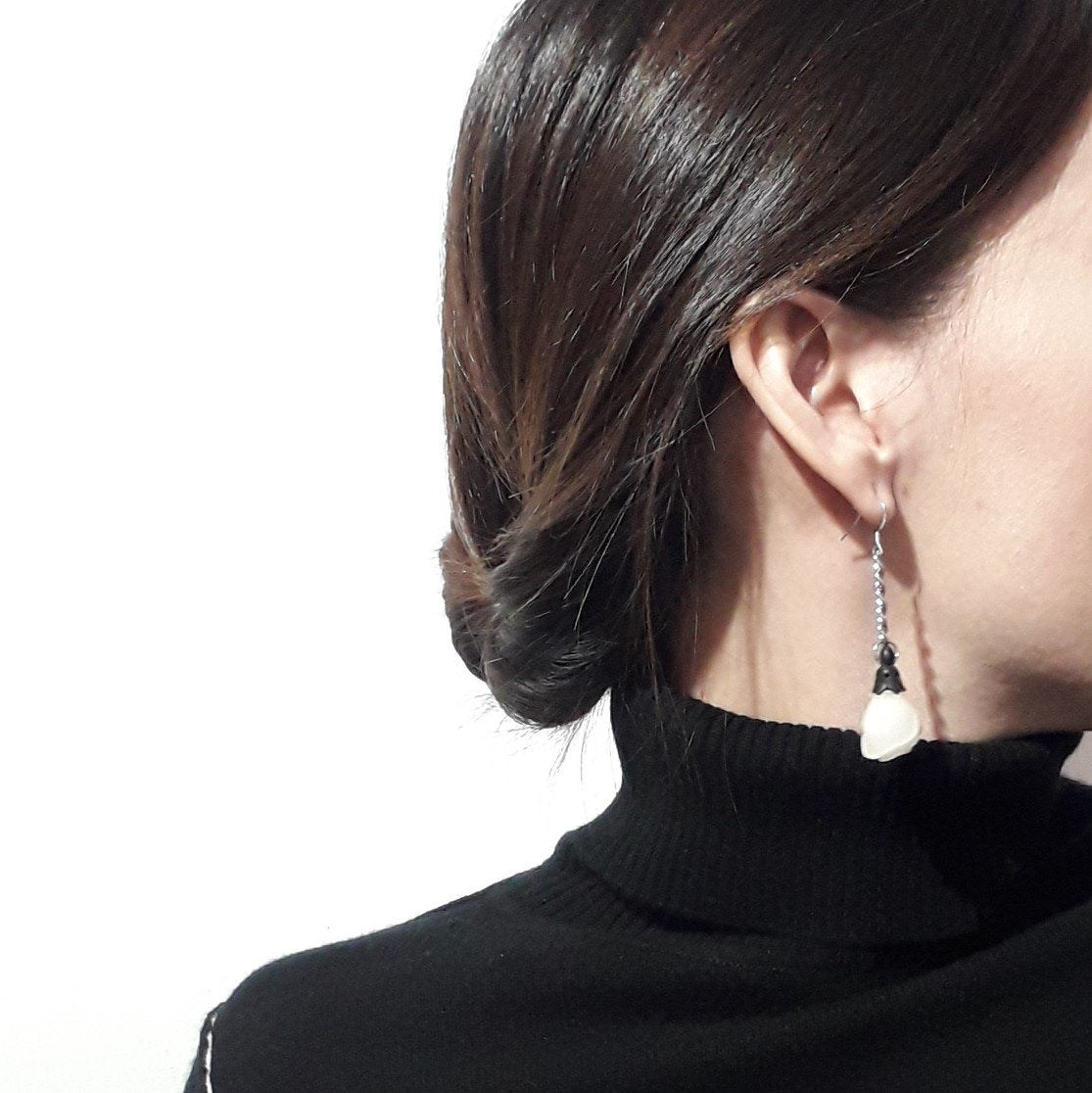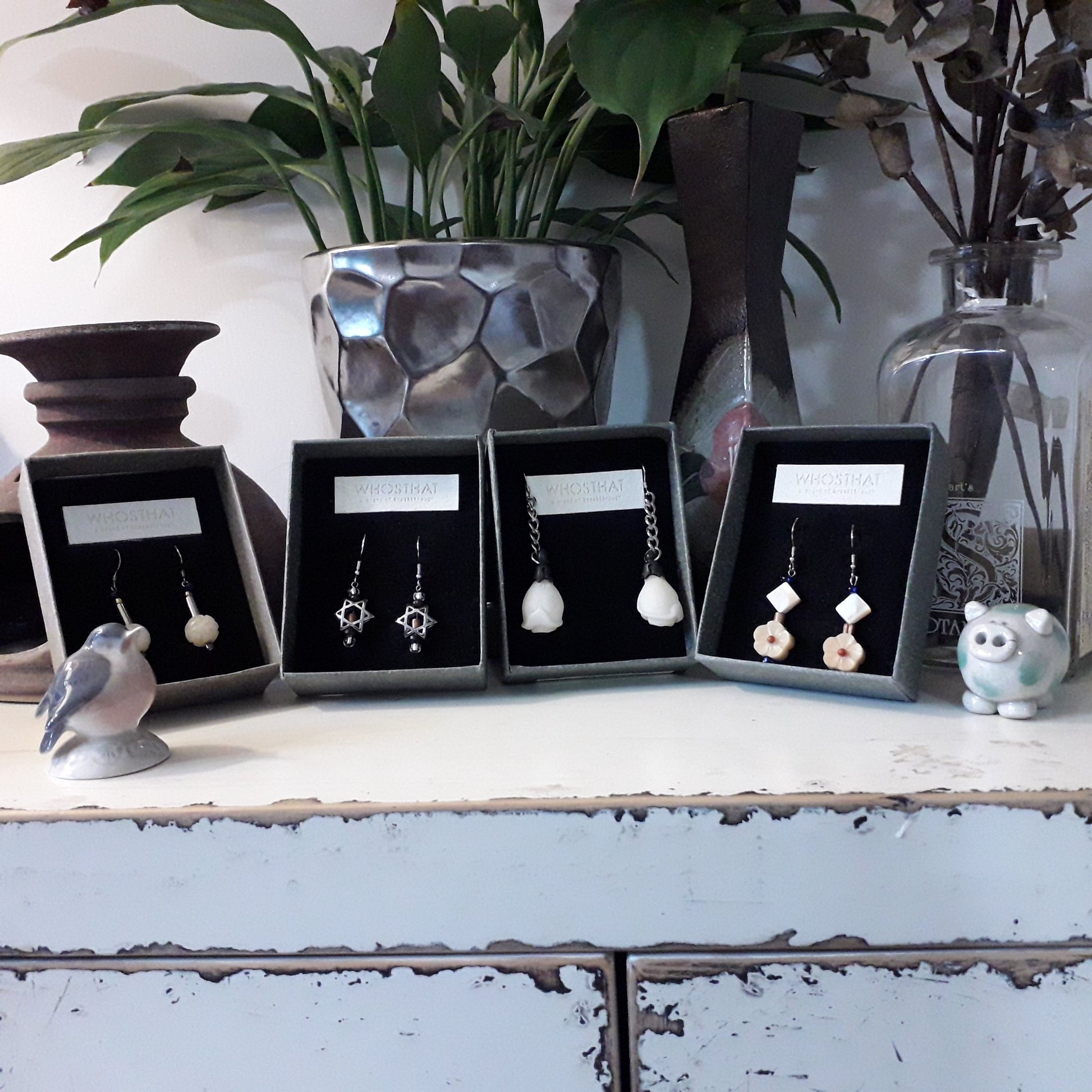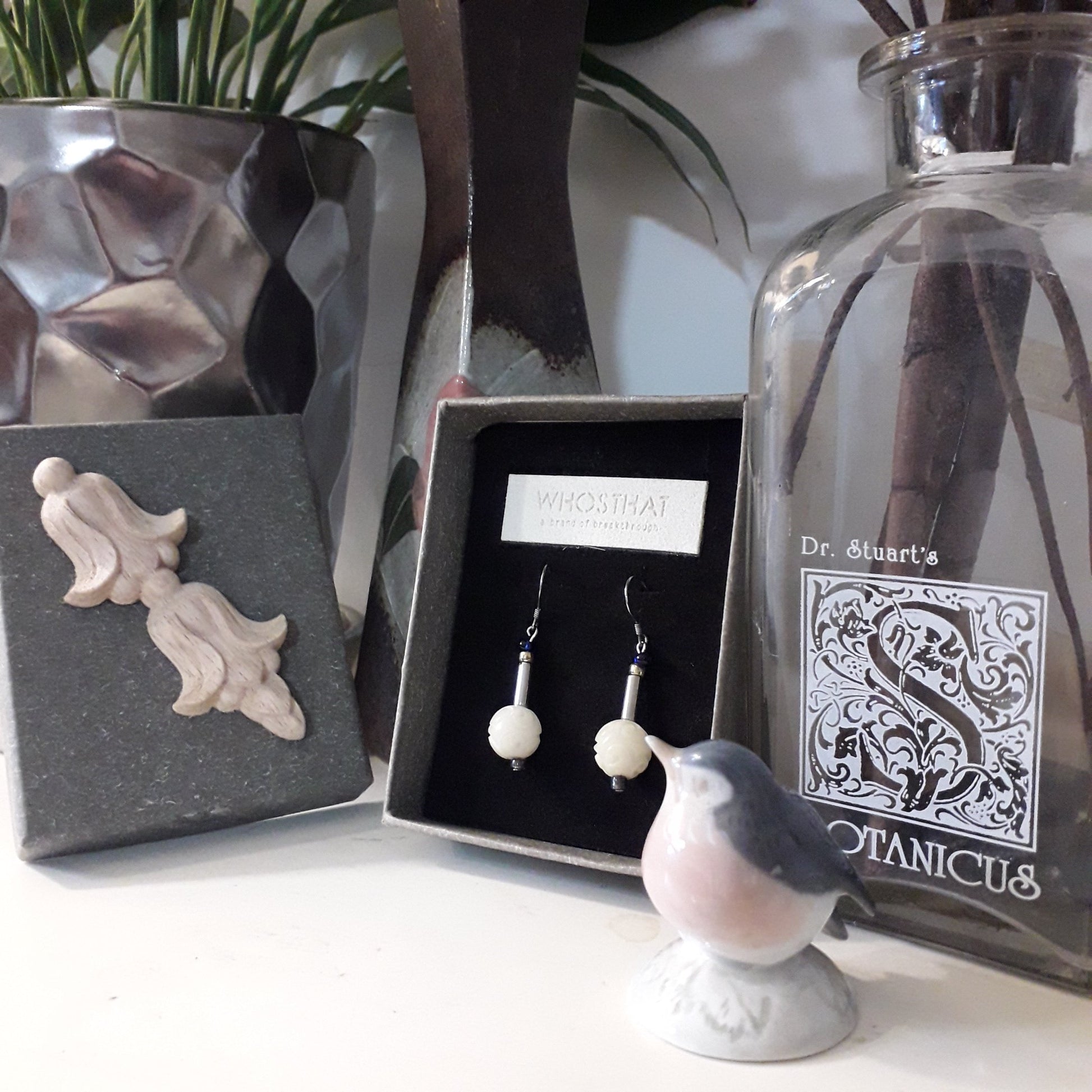 ascinated by the beauty and texture of natural material, WHOSTHAT designers use white jade bodhi root / ivory nuts crafted objects to create this natural earring collection, presented an oriental twist of trendiness.