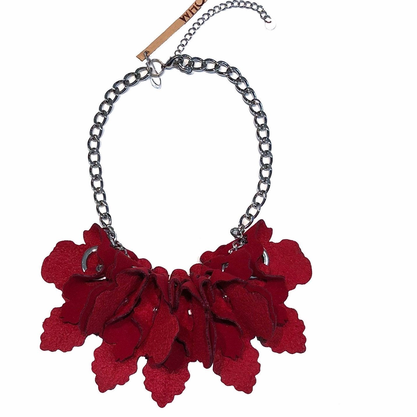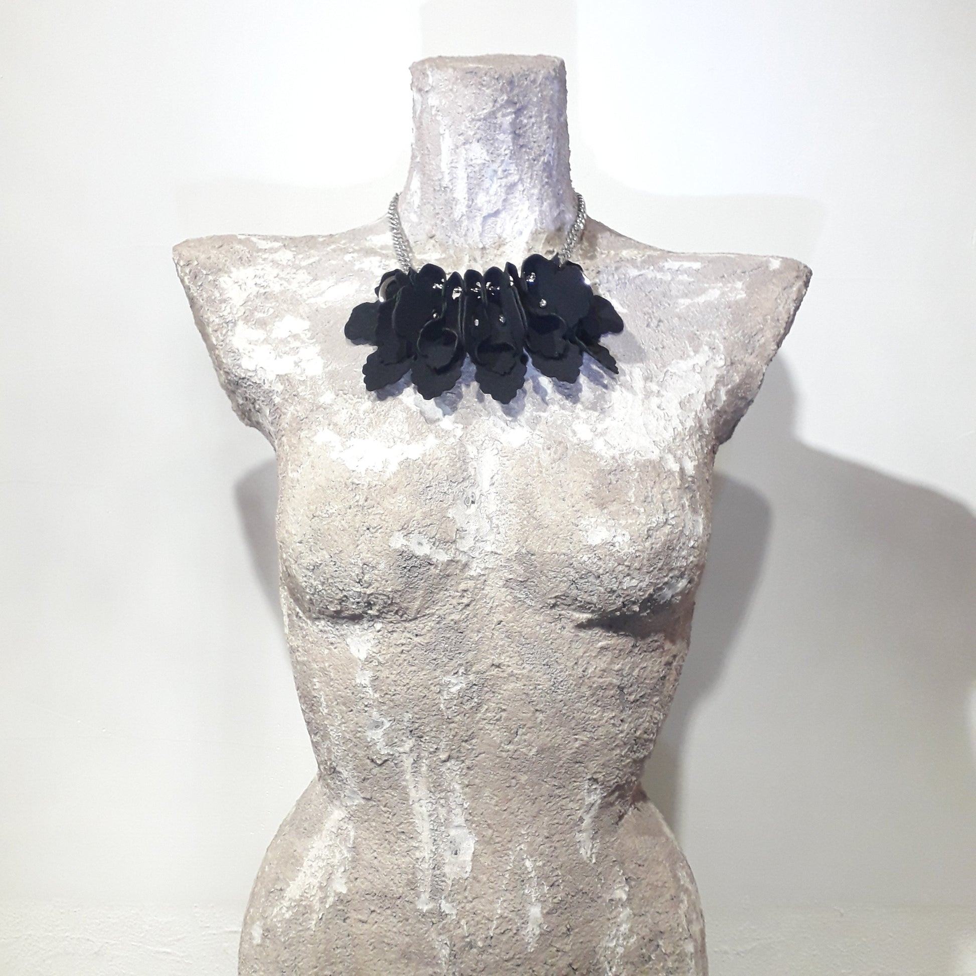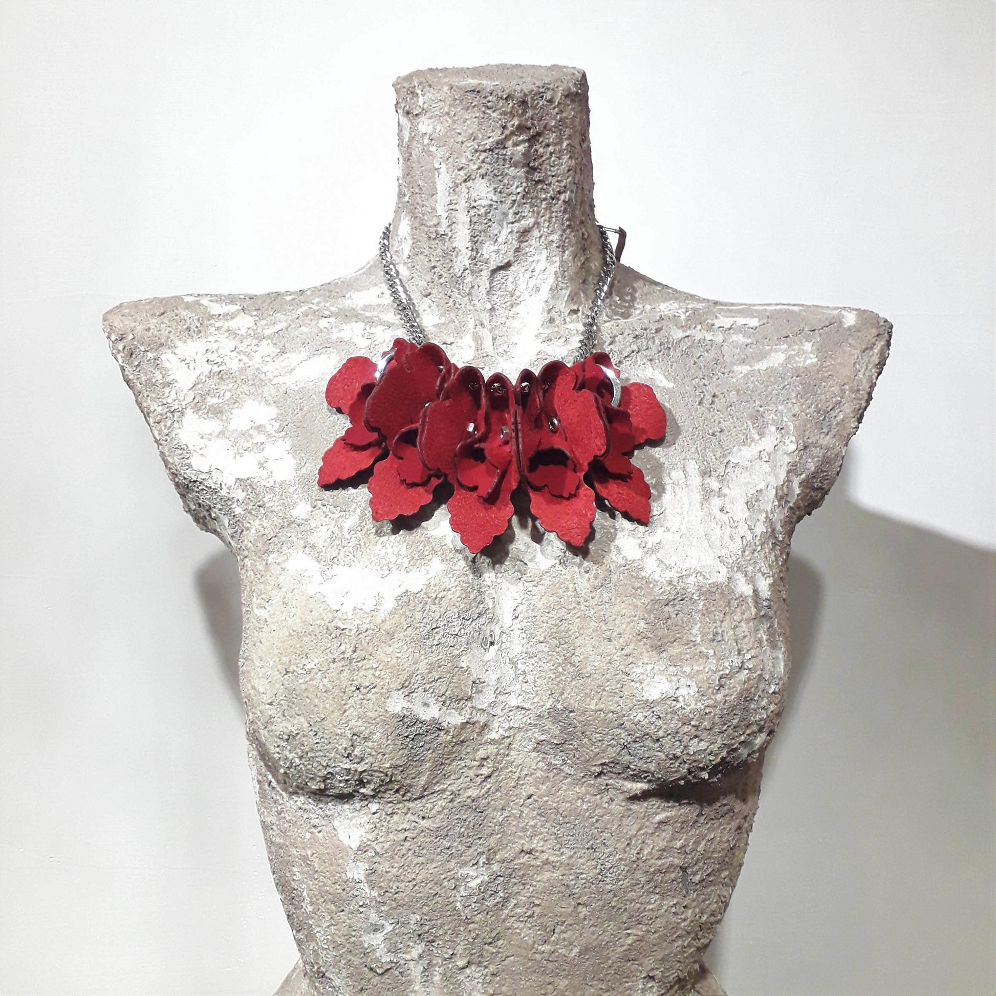 Inspired by the form and silhouette of orchid flower, this necklace is assembled by our invented bolts and nuts technique gives it a 3 dimensional effect rarely found in the market, stand as a fashion statement that will bring you attention and admiration.