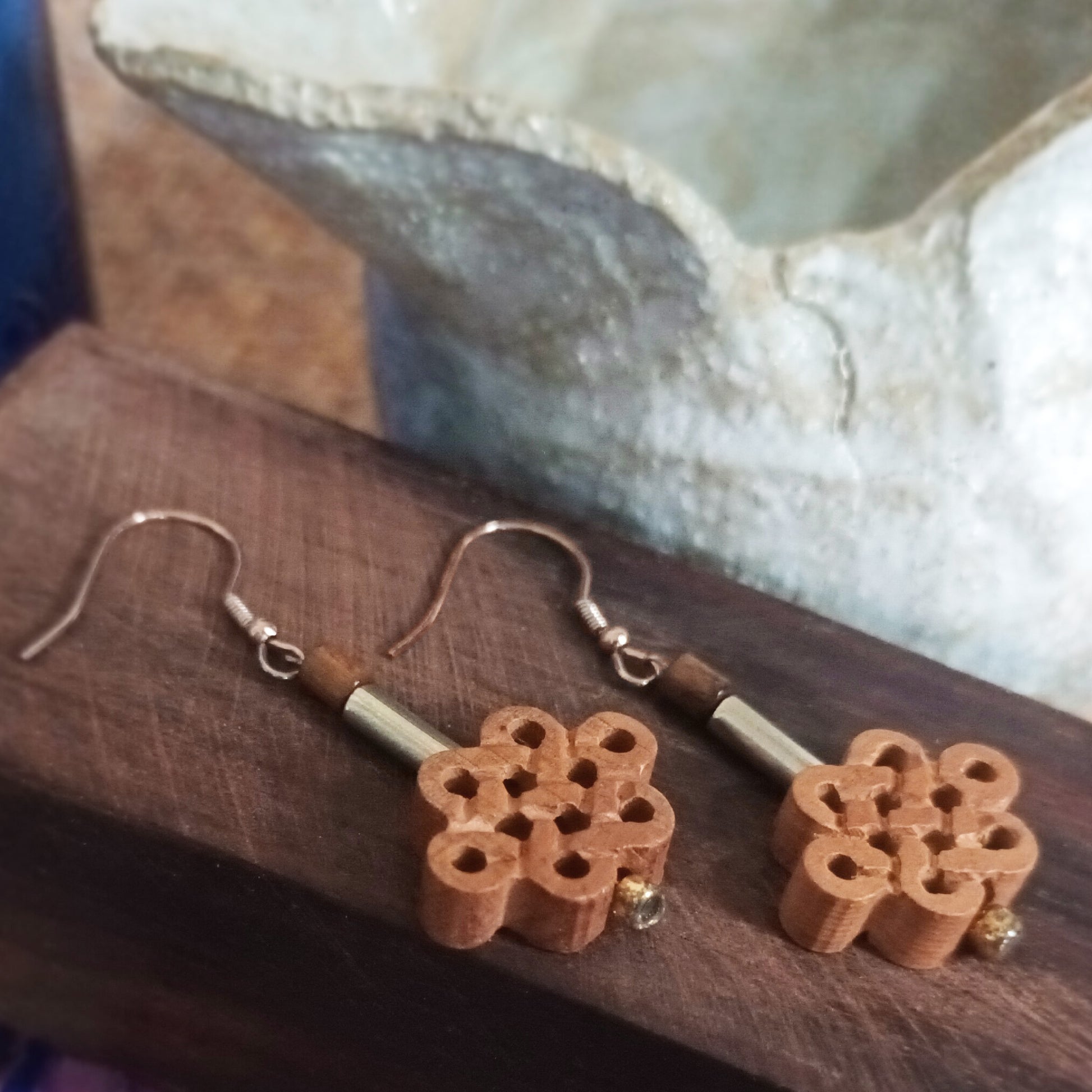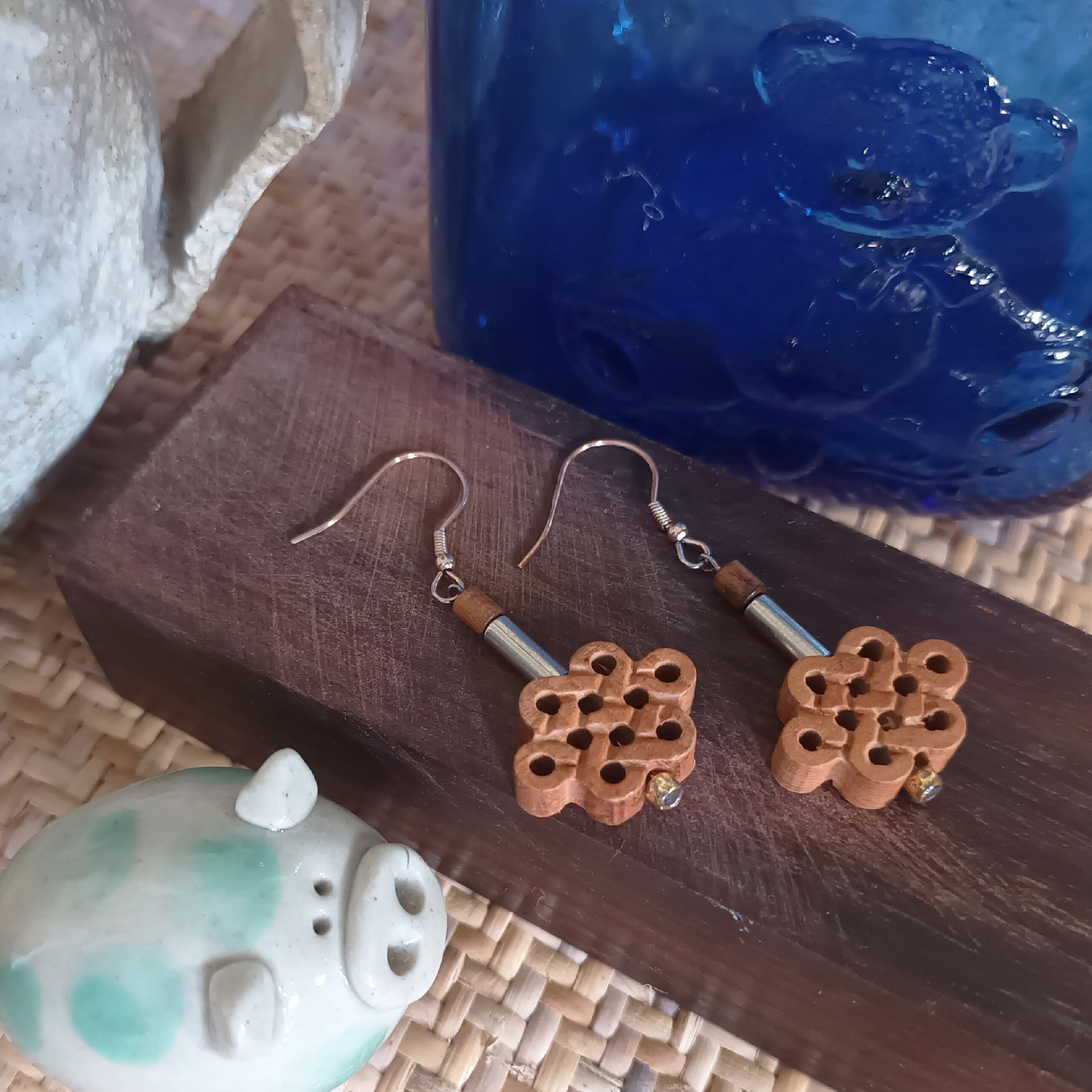 Scented peach wood Jubilation knot 925 silver platinum plated ear pins