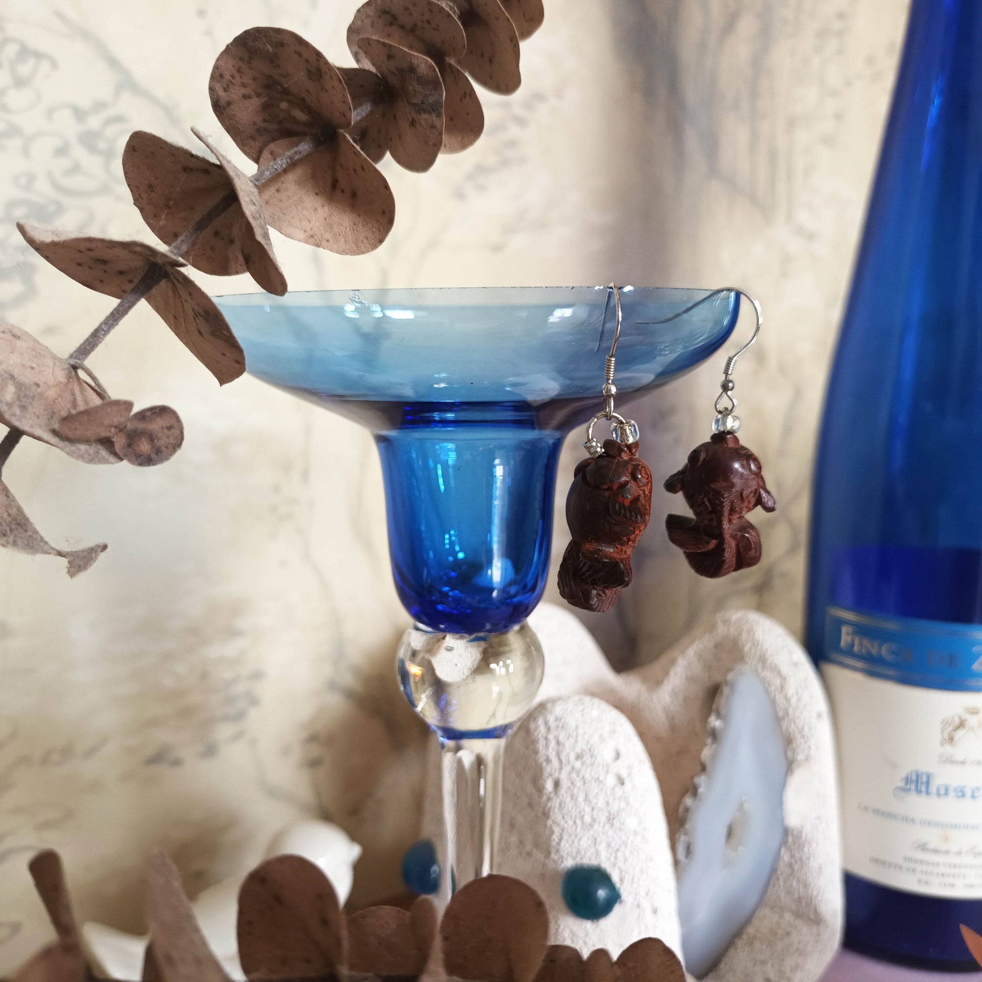 5. Natural Accumulation: The more time you refill the wood part of the earrings with essential oil, the more shines and darker it will be.