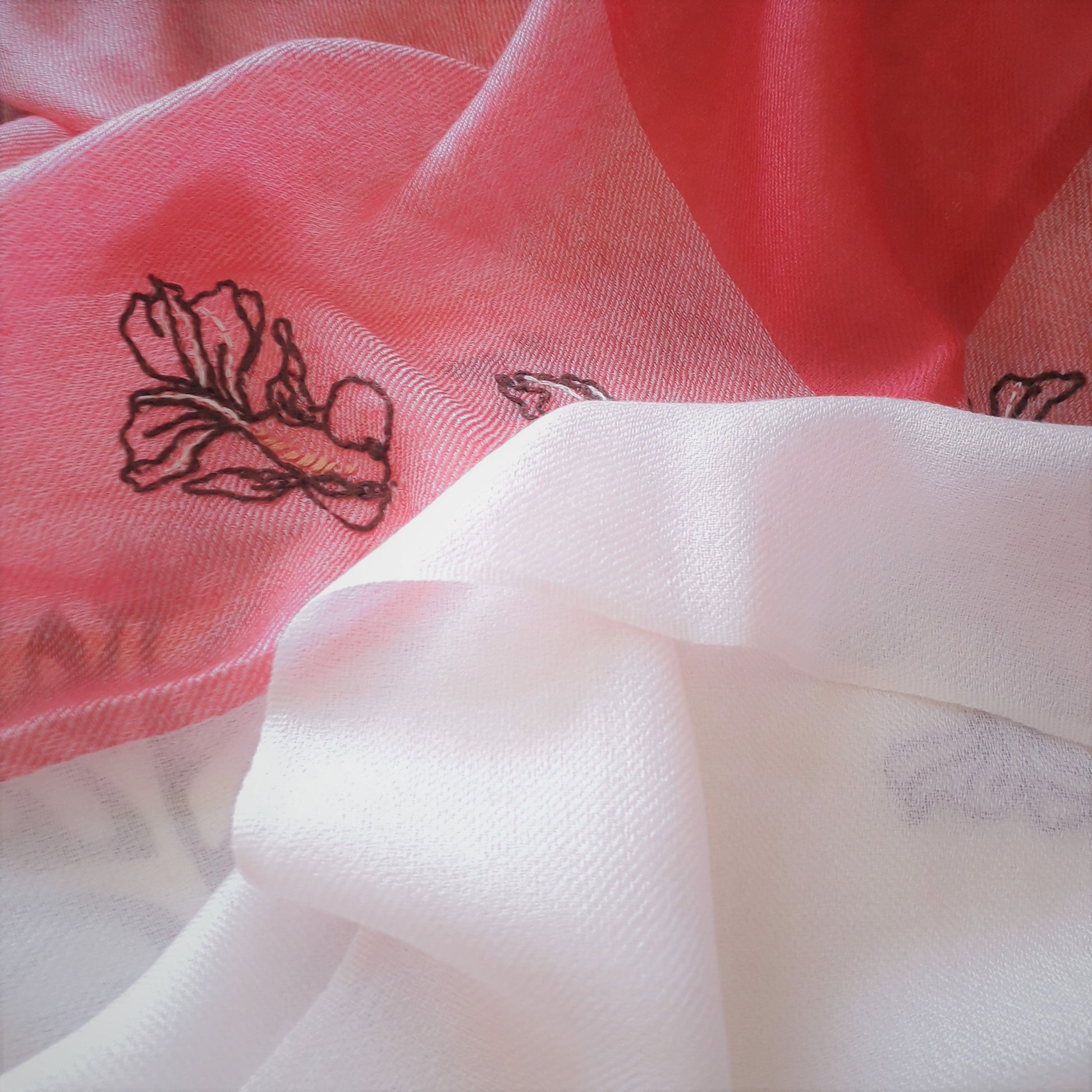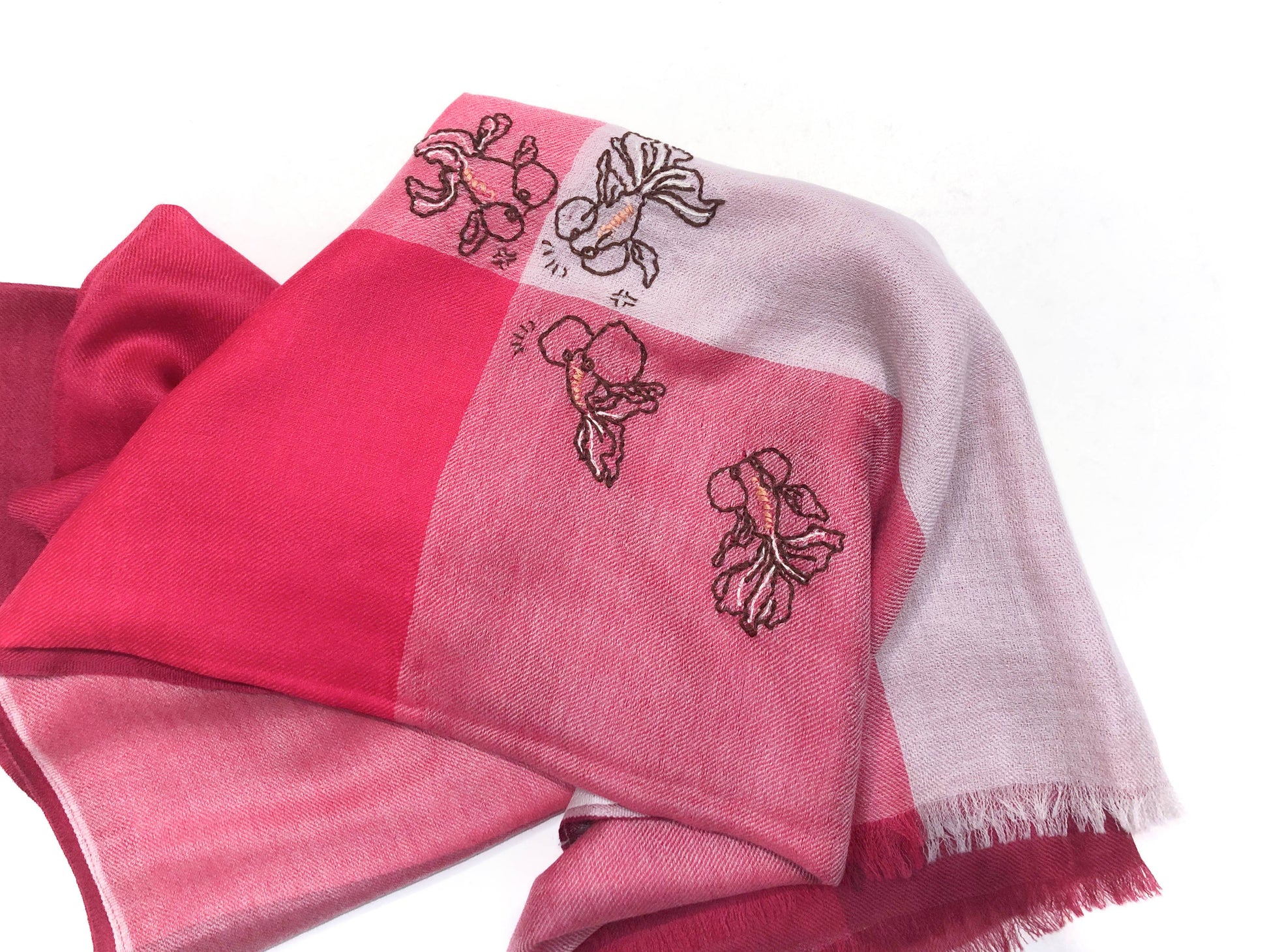 Super fine hand embroidery bubble eyes goldfish 300s pure cashmere big scarf