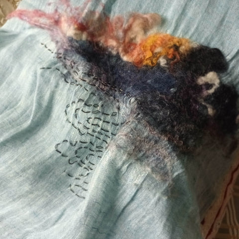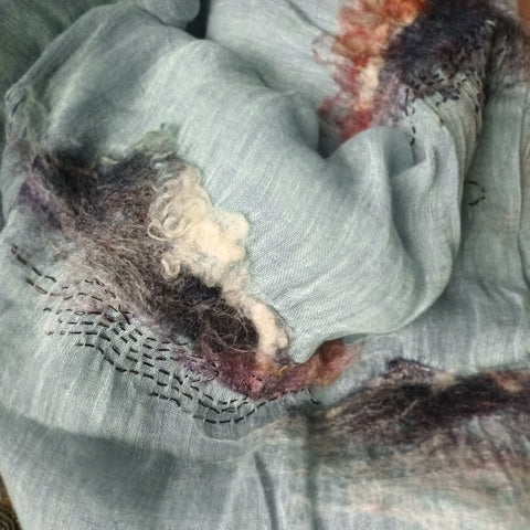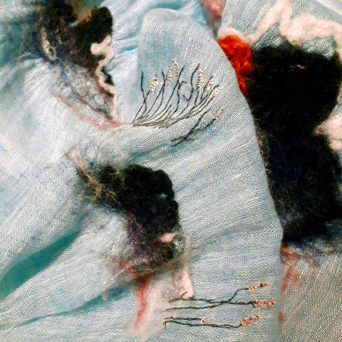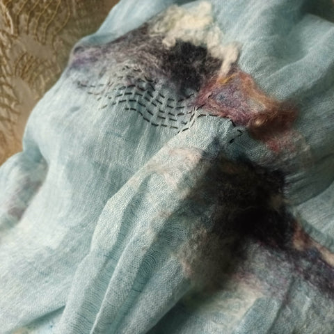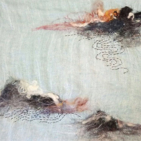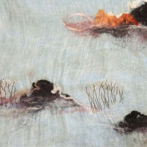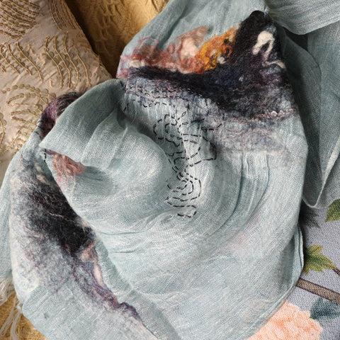 WHOSTHAT 可穿戴的藝術品糸列, 以傳統手工毛氈工藝揉合現代手綉圖案,創作出一系列充滿超現實的漣漪圖案痳質圍巾. 最適合生活在空調的上班族.